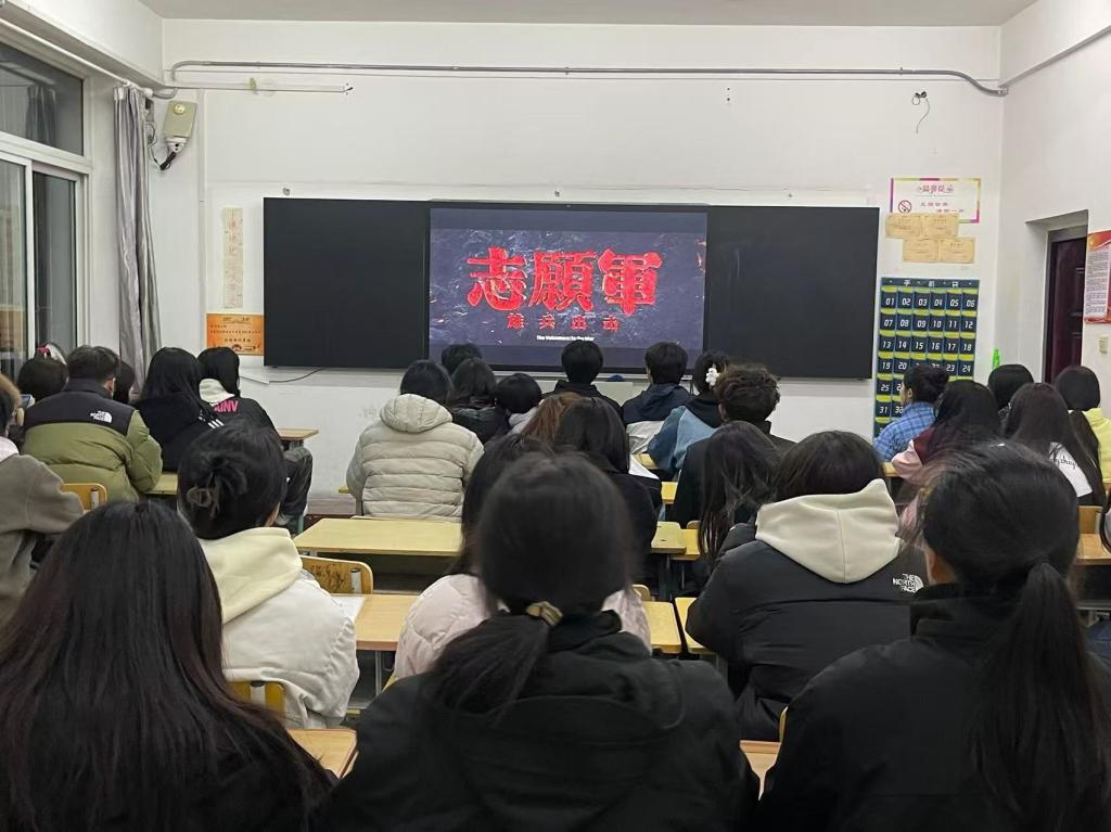 为庆祝中华人民共和国成立七十五周年,纪念中国人民志愿军抗美援朝出国作战七十四周年,深入学习贯彻习近平新时代中国特色社会主义思想、党的二十大精神,激发青年爱国主义情怀,增强班组的凝聚力、战斗力。 10月25日,小教与设计学院党总支开展了“重温抗美援朝壮举,传承红色不朽精神”红色观影活动,组织第三期入党启蒙教育培训班学员及在校入党积极分子集体观看了爱国主义影片《志愿军:雄兵出击》,致敬英烈、铭记历史,向最可爱的人致敬。