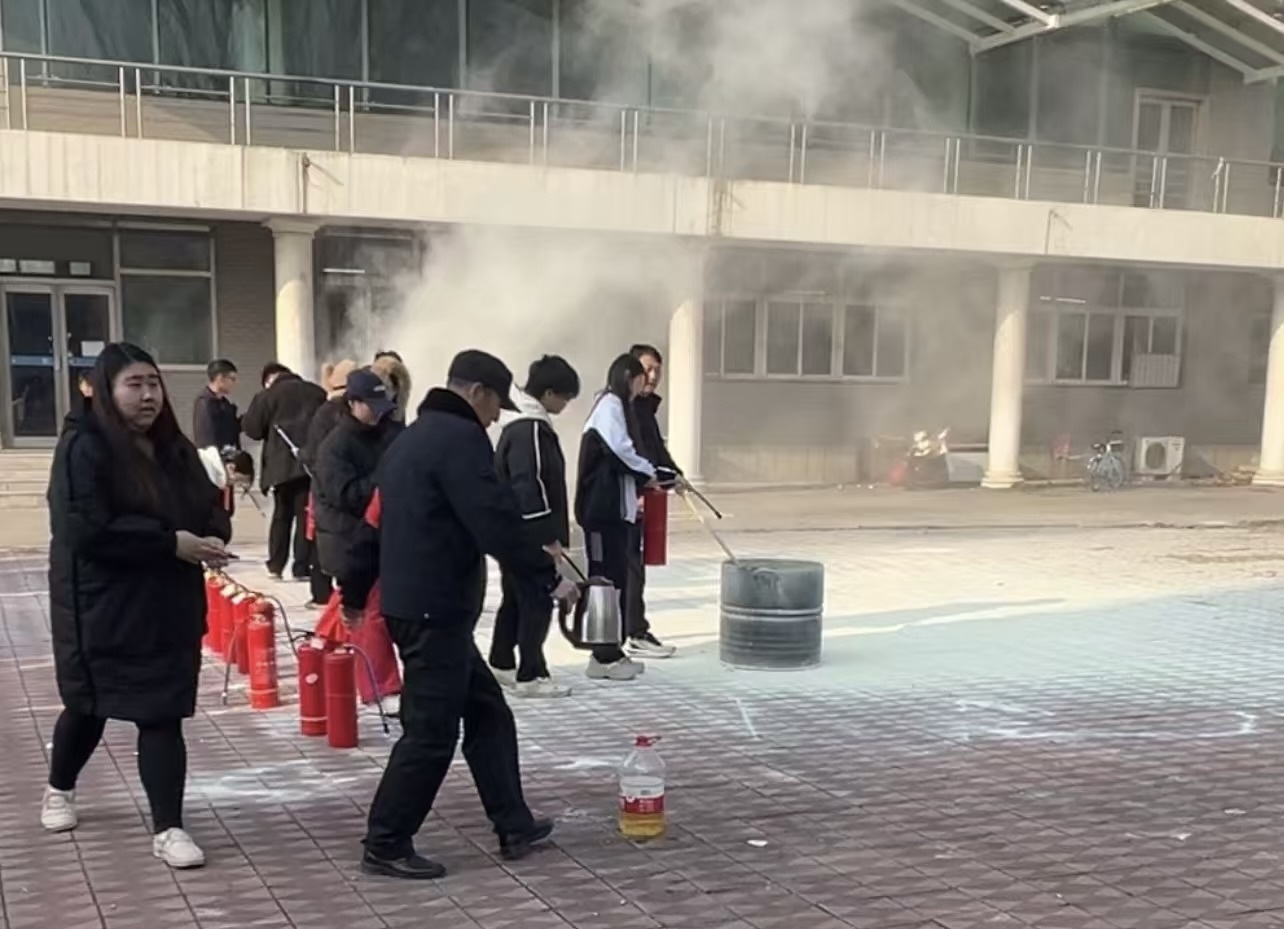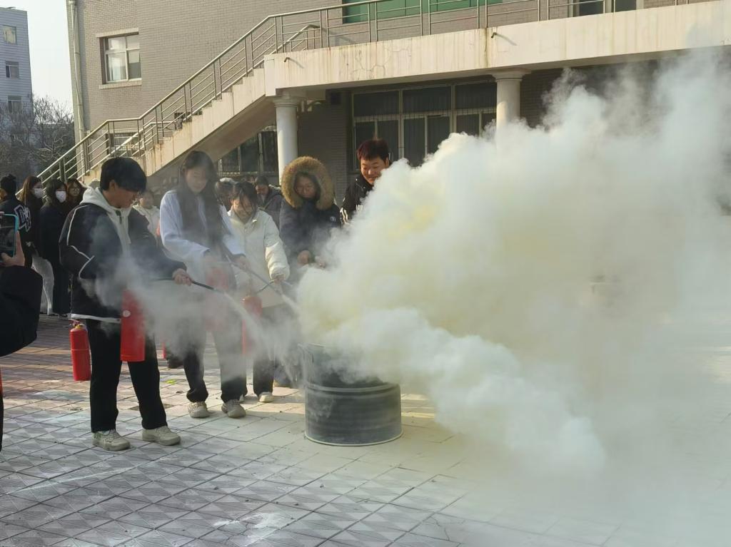 在实际操作环节,师生们纷纷踊跃参与。在朱老师的指导下,他们亲自拿起灭火器,按照正确的方法进行灭火操作。虽然有些同学在初次操作时略显紧张,但在老师的耐心指导下,逐渐掌握了要领,成功地将火焰扑灭。