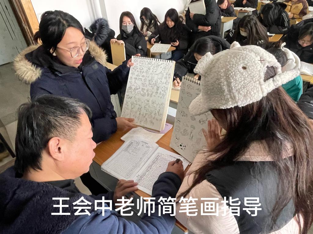值得一提的是,学院还安排了专业老师深入晚自习给予学生专业指导。23 级的毛笔字和简笔画作品以及 24 级的钢笔字作品由学生会学习部统一收齐后送到老师处批阅,而 23 级的钢笔字和 24 级的毛笔字、简笔画则在上课时由任课老师批阅,并且这些成绩都将纳入平时成绩,极大地调动了同学们的积极性。此外,在普通话练习上,学院邀请了侯笑菊老师进班辅导,纠正同学们的发音、语调,帮助大家提高普通话水平。同学们积极参与,课堂氛围热烈,大家在轻松愉快的氛围中不断提升自己的语言表达能力。