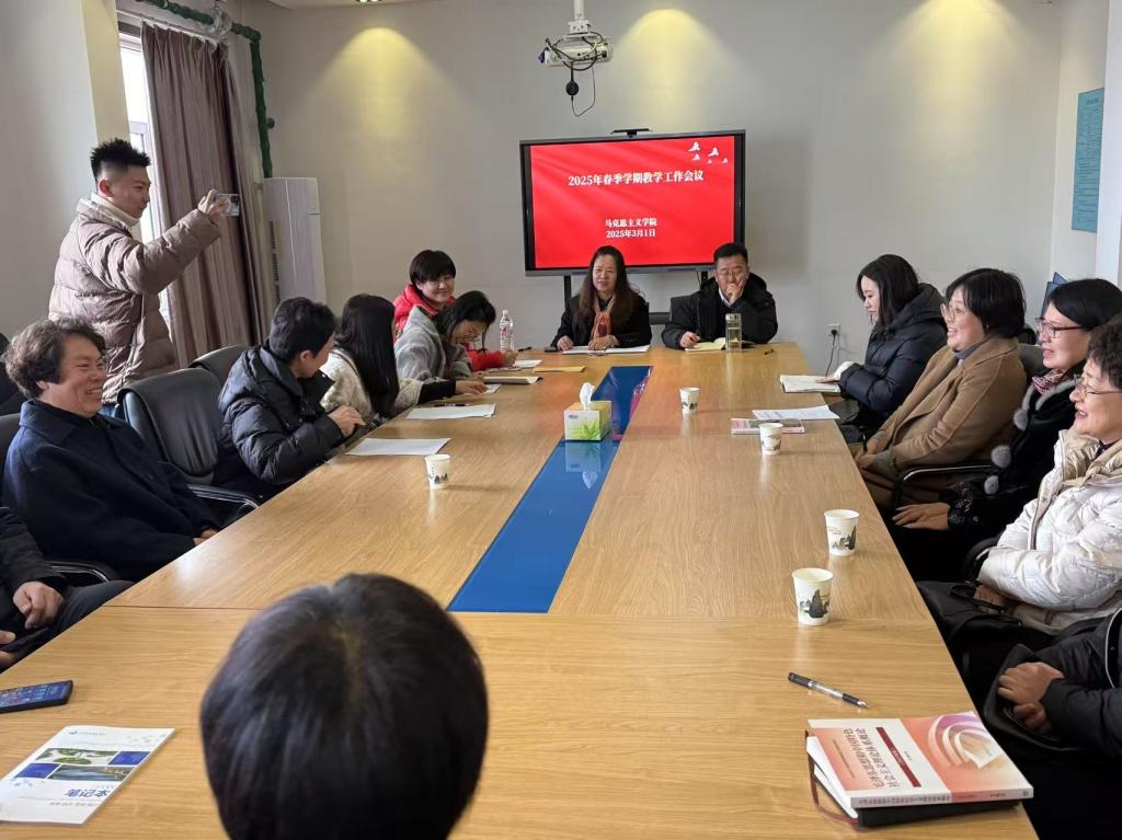 马克思主义学院于3月1日在行政楼402会议室召开了2025年春季学期工作会议,旨在进一步明确新学期的工作方向,凝聚全院教师的智慧与力量,共同推动学院各项事业的蓬勃发展。会议由马克思主义学院院长佟艳主持,思政联合直属党支部书记陈杰及全体思政课教师参会。