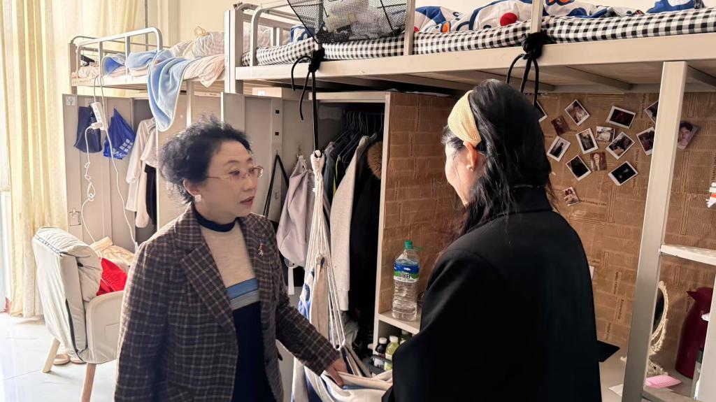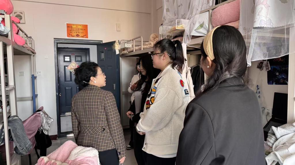 为进一步加强学生宿舍管理,营造安全、整洁、舒适的住宿环境,4 月 2 日,小教与设计学院院长兼党总支书记韩丽春带领辅导员团队深入学生宿舍,开展卫生与安全检查,并亲切慰问学生。