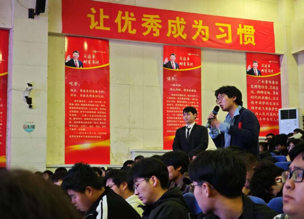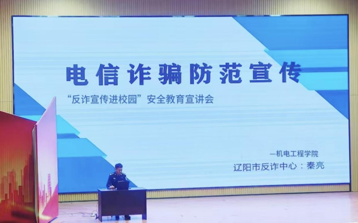 为了加强校园文化建设,提升学生安全防范意识,构建和谐稳定的校园环境,4月2日13:30机电工程学院召开“反诈宣传进校园”安全教育宣讲会。特邀辽阳市公安局反诈支队副队长秦亮主讲,校保卫处处长黄林栋,机电工程学院党总支书记王乔智,副书记刘思妤及辅导员到场,全体24级学生参加。