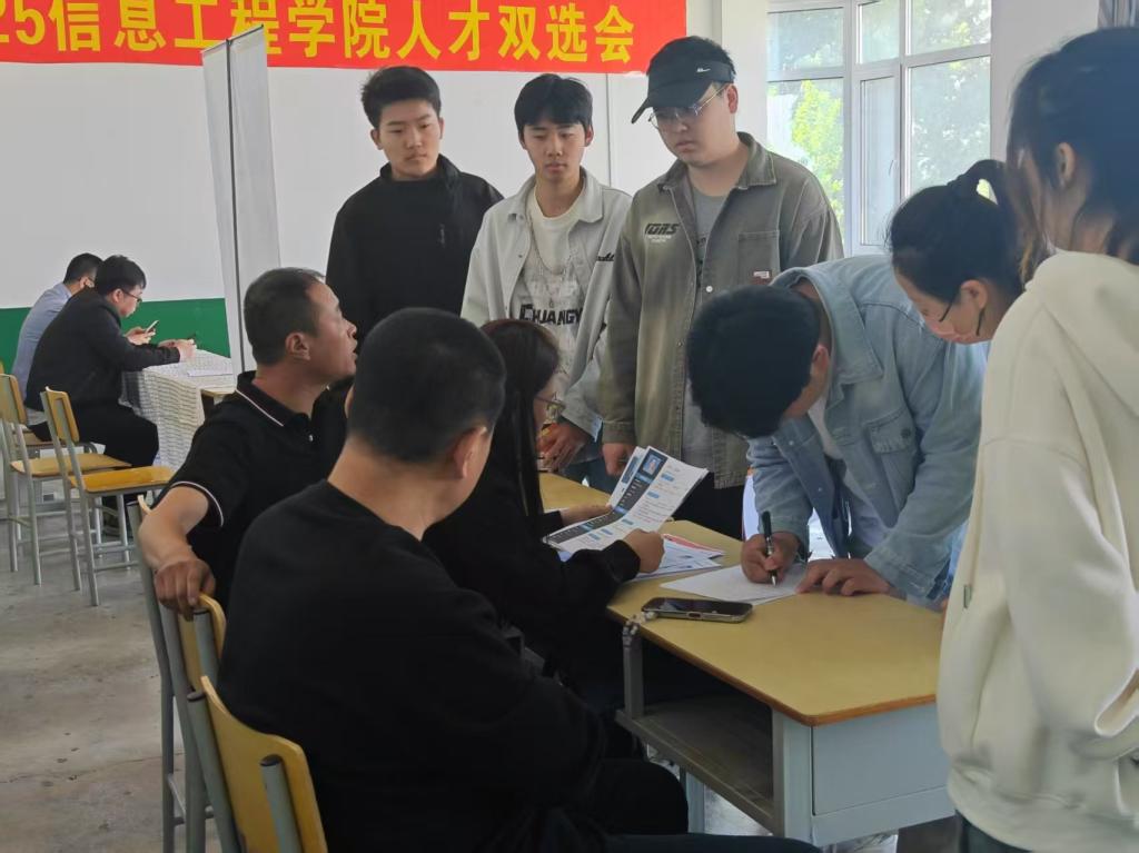 双选会现场,信息工程学院院长付兴宏主动走访各企业展位,与用人单位负责人围绕人才需求、校企合作方向展开交流。他详细介绍学院专业特色与人才培养成果,认真倾听企业在技术应用、岗位需求等方面的建议,探讨共建实习基地等合作模式;另一边,副院长黄跃成为学生们进行企业讲解,他结合行业发展趋势,从企业优势、岗位特点、职业晋升路径等角度,为学生们剖析不同用人单位的情况,用通俗易懂的语言解答学生关于职业规划的疑问。用人单位在与学院师生深入交流后,对学院学生展现出的专业素养和实践能力给予高度评价。