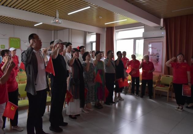 活动在庄严肃穆的重温入党誓词仪式中启幕。全体党员面向鲜红党旗,高举右拳,铿锵誓言中,老同志们坚定的目光与青年学子激昂的声音交相辉映,共同镌刻“为共产主义事业奋斗终身”的信仰丰碑,凝结成“红色江山代代传”的精神契约。