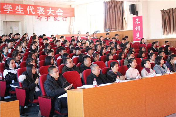 2020年11月27日,澳门新浦京3189娱乐场第一次学生代表大会在学术报告厅胜利召开。27日下午13时30分,大会在雄壮的国歌声中正式拉开帷幕。党委书记闫德荣、院长陈丽、党委副书记兼纪委书记杨振永、副院长薛秋江、副院长衣颖、工会领导、党委学生工作部各位领导、各二级学院党总支书记、副书记、团总支书记、辅导员,以及来自各二级学院的140名学生正式代表、40名列席代表参加了本次大会,大会由团委副书记柏心怡主持。